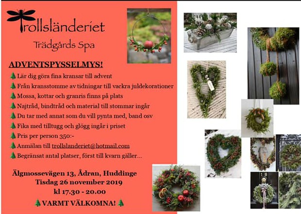 På tisdag 26 november är det dags för mysigt adventspyssel! Vi lär oss hur vi binder fina kransar och gör lite olika arrangemang till advent och jul.